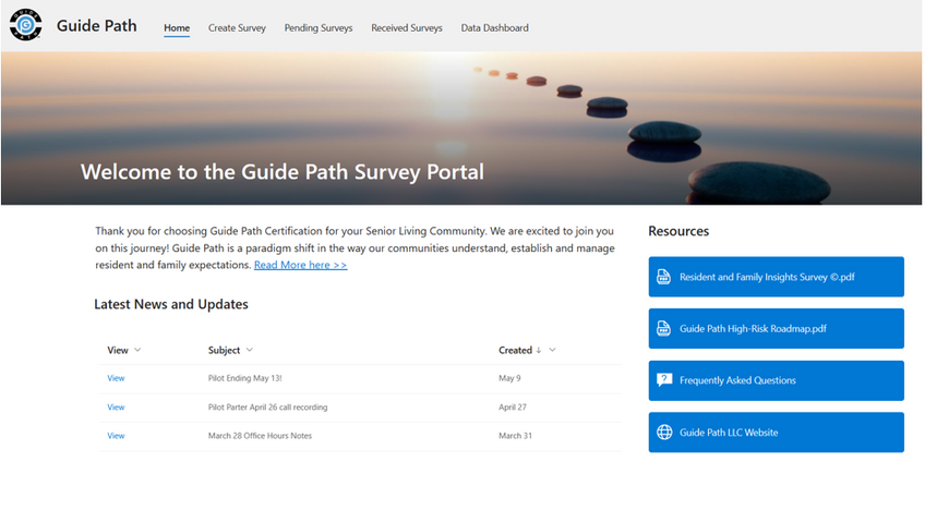 Access the Guide Path Community Portal and its entire suite of tools, resources and support materials to help you understand the unique needs and expectations of your residents and their families, while identifying areas of potential risk.